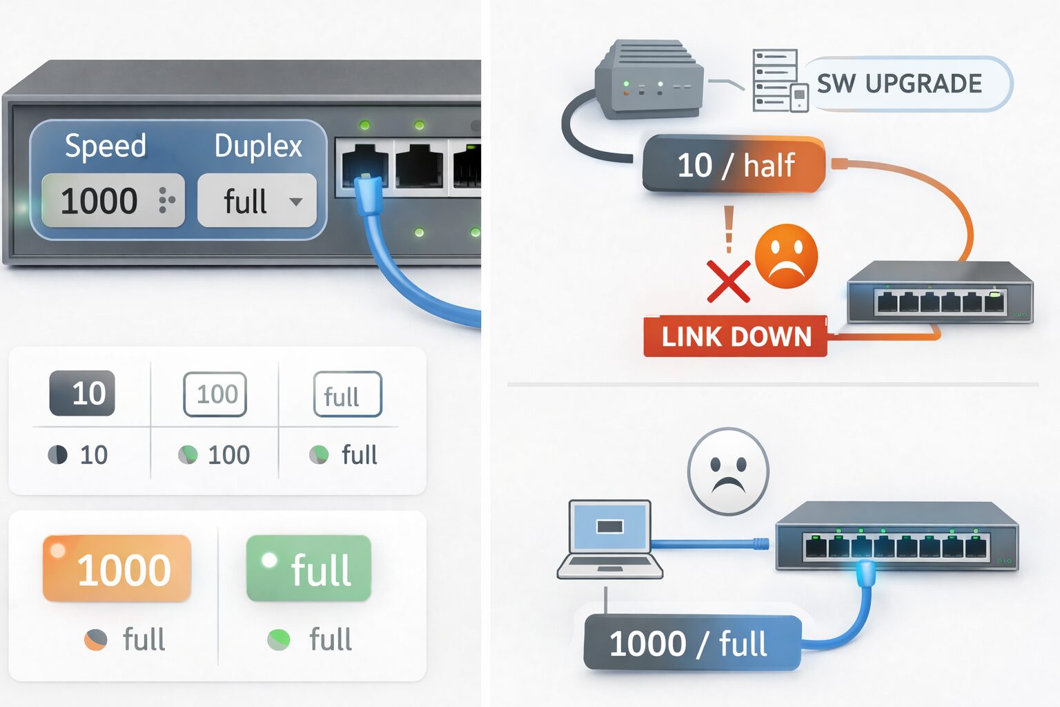 インターフェースのspeedとduplex設定|SW更改で半二重固定機器に気づかずハマった話